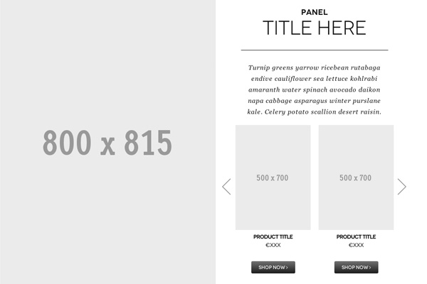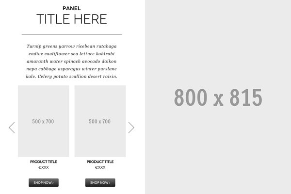 Panel with title, text and product